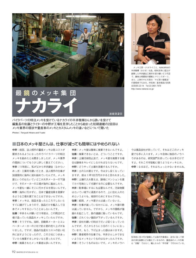 メッキ工房「NAKARAI」では、さまざまな雑誌に取材されています。 ここでは、過去に取材された記事を掲載しています。